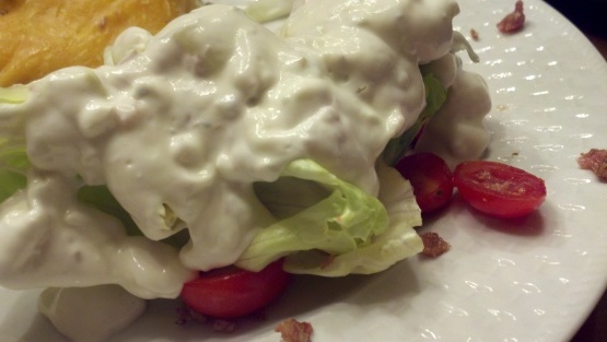 C’est très bien sur une salade, comme sandwich à tartiner ou comme trempette pour des ailes de poulet. Différent à cause des oignons caramélisés.Il s’agit également bien sur le dessus de crostini.A partir de TOH, avec des ajustements mineurs à mon goût.