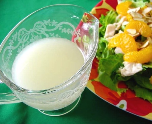 Ma mère a utilisé cette vinaigrette sur une salade de laitue romaine.Elle a ajouté des mandarines et des amandes à la salade et l'a coiffée de cette vinaigrette.J'adore cette combinaison et l'utilise maintenant sur toutes les salades fruitées.