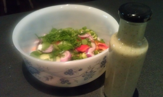 J'utilise ceci sur la salade et j'ajoute des choses comme le fromage feta, les olives kalamata, le pepperoncini, etc.Il a même un goût délicieux sur une salade ordinaire ou sur du halloumi grillé.