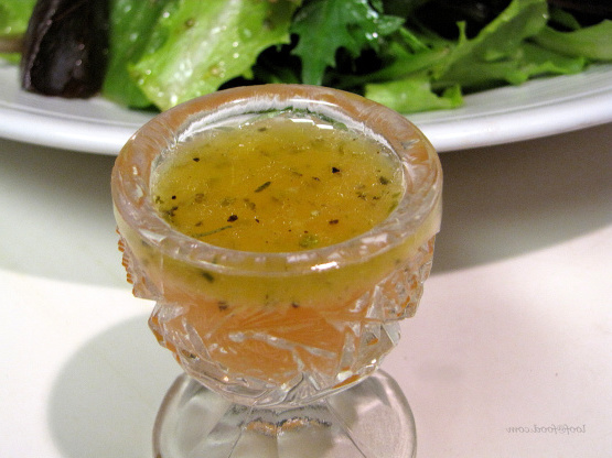 La vinaigrette est facile et délicieuse. Les amateurs de salade me disent qu'ils mangeront un seau de salade complet tant qu'elle porte cette vinaigrette. J'ai également appliqué cette vinaigrette sur la pâte à pizza maison (au lieu de la sauce tomate) à la maison. Remarque: Si vous n'avez pas de vinaigre de vin rouge, vous pouvez remplacer une cuillère à soupe de vin rouge (n'importe quel type) par un soupçon de vinaigre ordinaire (ce n'est pas vraiment une idée nouvelle; c'est simplement un remplacement facile!).