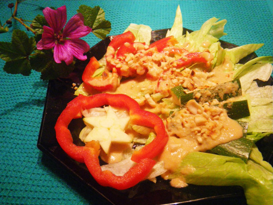 Utiliser comme vinaigrette et garnir des arachides broyées restantes.