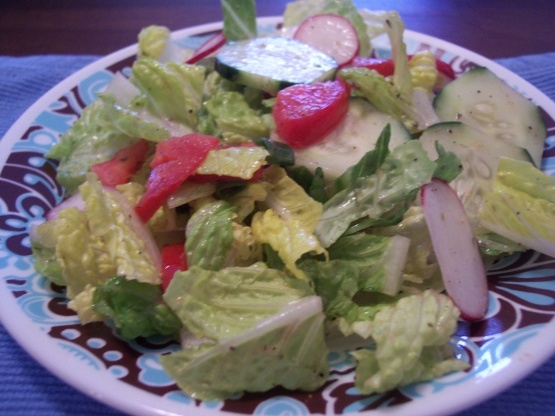 J'ai deux versions de ce que nous appelons notre vinaigrette maison que j'utilise pour les salades. J'utilise la première version (l'originale) depuis plus de 40 ans et la deuxième version depuis environ 5. Tout le monde qui a mangé mes salades adore version, et plus de gens que je ne me souvienne plus ont demandé la recette.Il est si simple et fondamental, mais il a bon goût. La plupart de mes invités me demandent toujours d’utiliser ma vinaigrette maison au lieu de vinaigrettes en bouteille.Je ne mesure jamais Je devrai faire une estimation, mais je vous suggérerais d’abord d’utiliser les plus petites quantités, puis de goûter et d’ajuster, si nécessaire. Bien sûr, la quantité devra être ajustée en fonction de la taille de la salade.