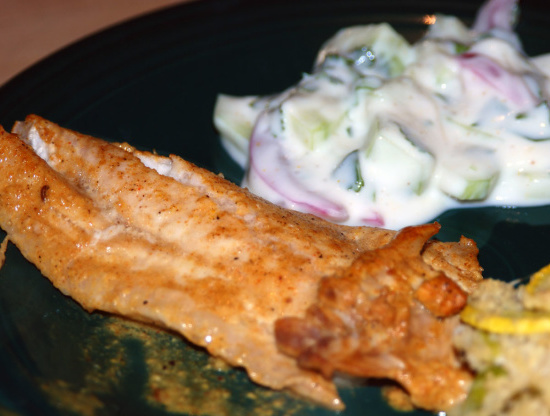 Cette recette savoureuse provient de Cooking Light. Le poisson est épicé, mais la salade qui l'accompagne est tellement rafraîchissante! Cela n'a certainement pas le goût d'aliments faibles en gras.