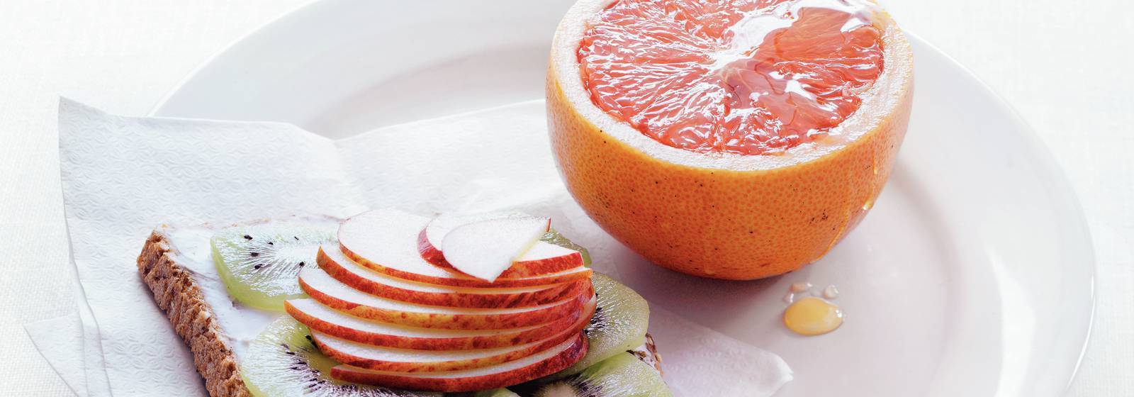 Une délicieuse recette hollandaise. Le petit-déjeuner contient les ingrédients suivants: pamplemousse rougeâtre (coupé en deux) et miel à verser (bouteille 450g).