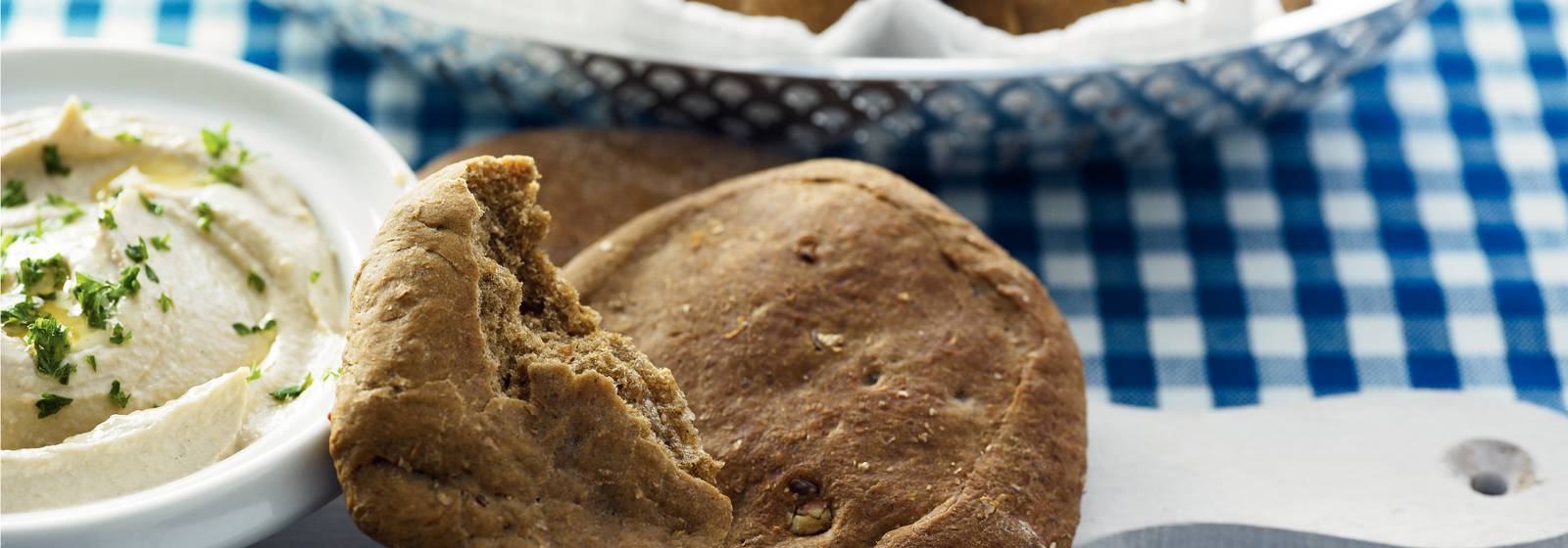 Faites glisser la plaque de cuisson dans le four et préchauffez le four à 250 ° C. Placez 8 petits pains sur la plaque de cuisson chaude, saupoudrez-les d'eau et faites frire le pita en 7 minutes environ, jusqu'à ce qu'il soit doré et cuit. Mettre les pitas chauds dans un panier et cuire les 8 autres rouleaux de la même manière. Délicieux avec des tapas ou du houmous