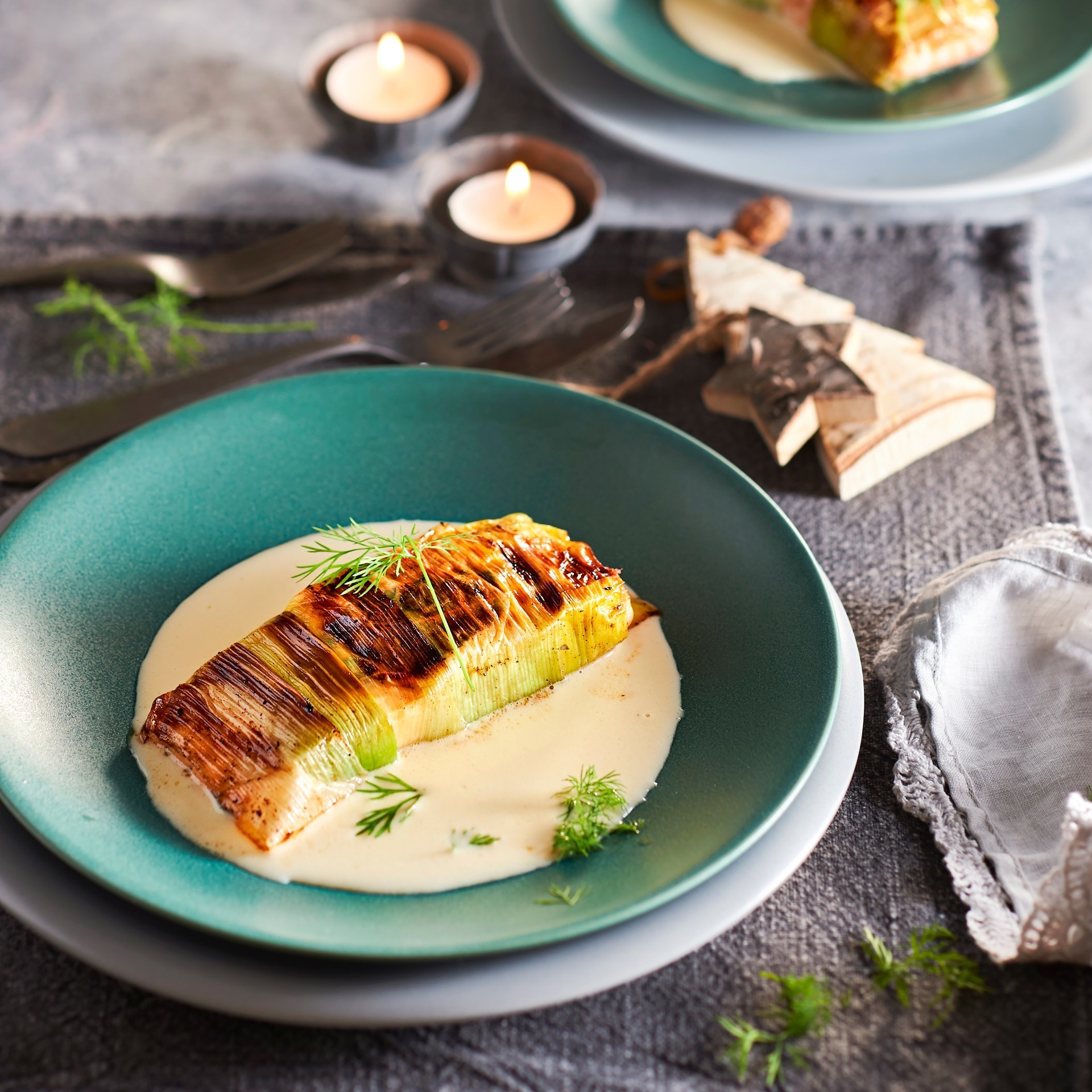 Saumon au poireau caramélisé avec sauce au vin blanc